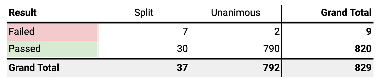 A review of this Council’s full voting record since their swearing in December 2023 shows that nearly 99% of all items passed—96% unanimously. Development and rezoning votes saw the most split votes.